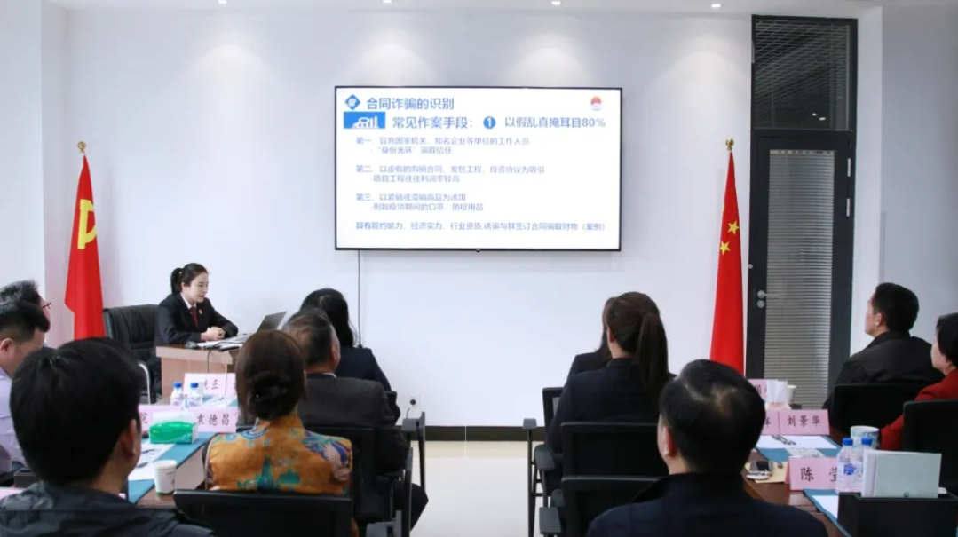 为精准回应企业需求、做深做实法律服务,市检察院硕士团成员、第二检察部干警陈莹就防范合同诈骗作普法讲座,讲解了合同诈骗的识别、立案标准、如何防范合同诈骗及遇到合同诈骗后如何维权等重点内容,帮助企业增强法律意识,提升防范化解法律风险的能力,为企业平稳发展提供有力司法保障。