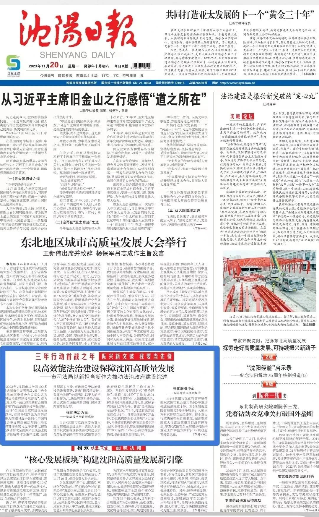 获评“全国法治政府建设示范市”以来,市司法局以此为新的起点,奋力推进习近平新时代中国特色社会主义思想在沈阳的生动实践,将贯彻落实习近平总书记在新时代推动东北全面振兴座谈会上的重要讲话精神作为重中之重,坚决贯彻落实市委、市政府关于法治建设的决策部署,聚焦“振兴新突破、我要当先锋”专项行动,以更大的担当和作为,以法治智慧和法治力量,助力沈阳全面振兴新突破,保障沈阳高质量发展。