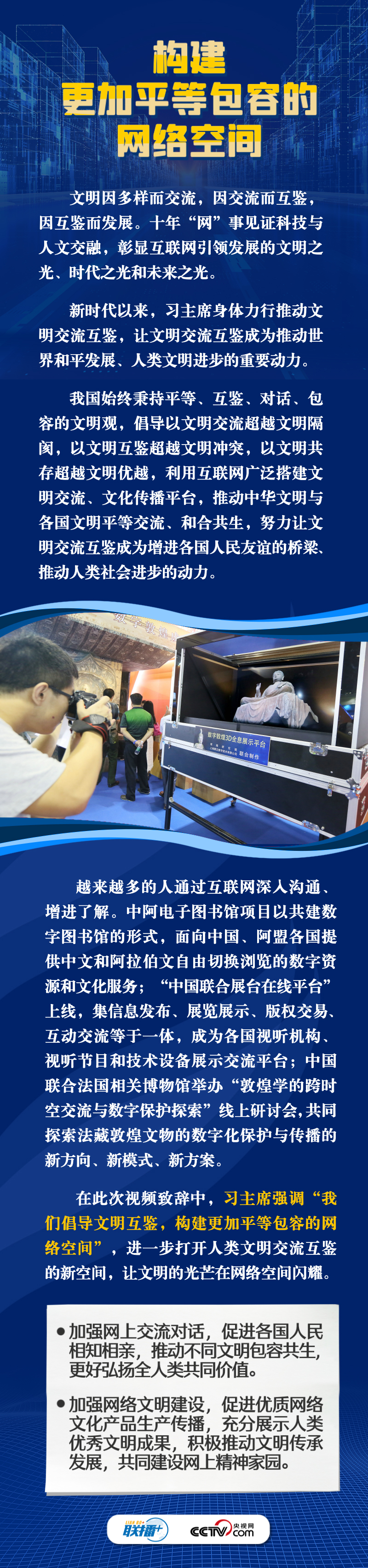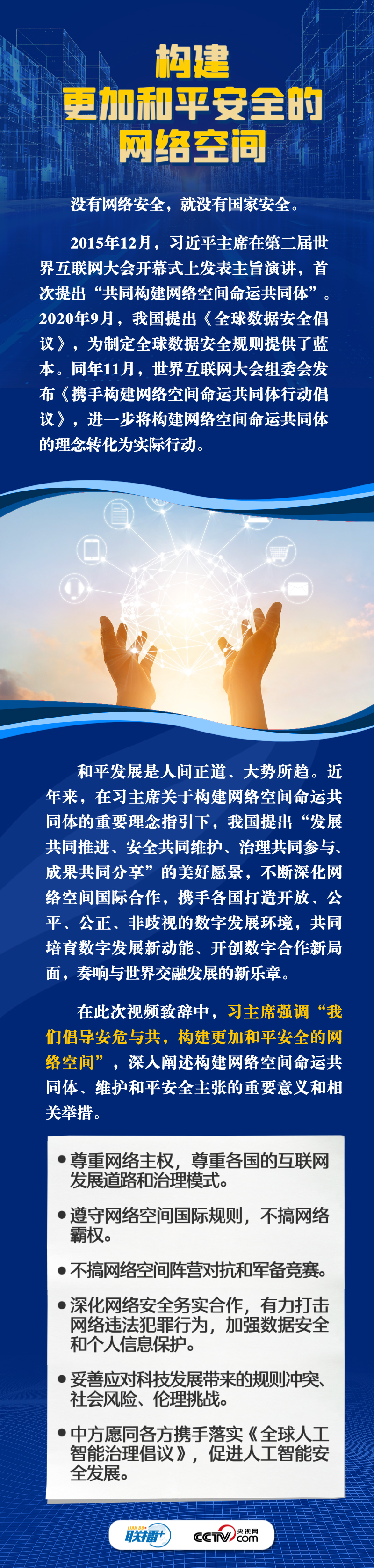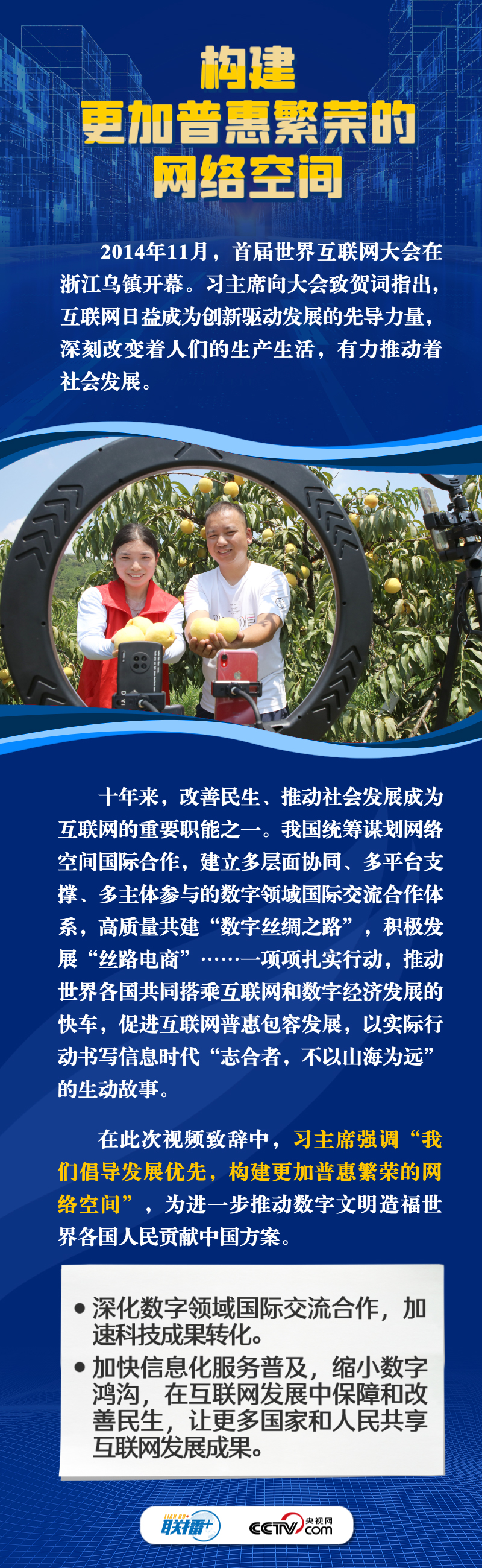 面对新的时代课题,习主席在此次视频致辞中倡导构建更加普惠繁荣、更加和平安全、更加平等包容的网络空间。这三个“网络空间”具体内容是什么?构建网络“新空间”有什么具体措施?央视网《联播+》与您一同学习。