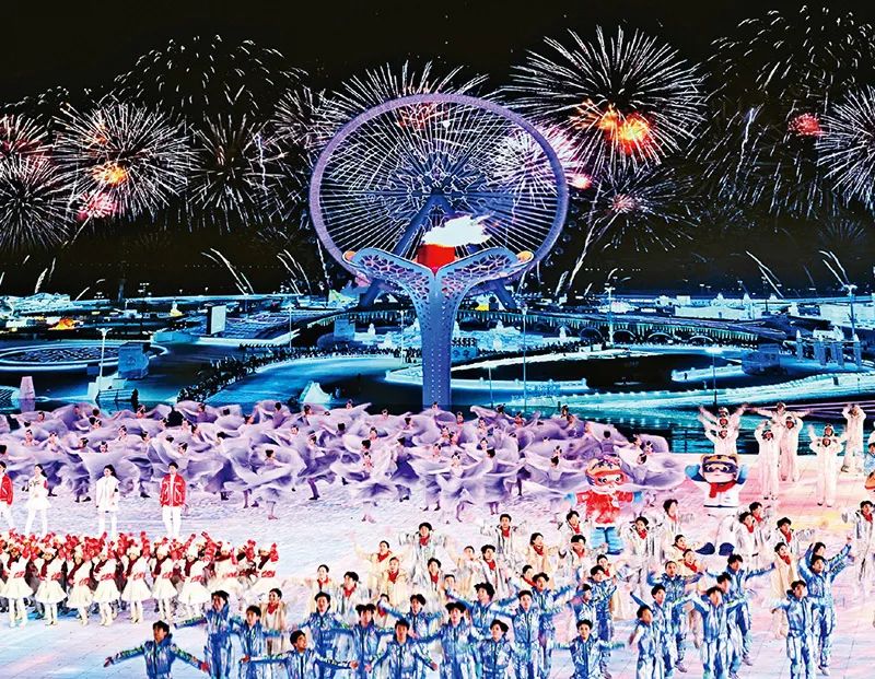 2025年2月7日晚,第九届亚冬会在哈尔滨隆重开幕。近年来,哈尔滨把发展冰雪经济作为新增长点,推动冰雪运动、冰雪文化、冰雪装备、冰雪旅游全产业链发展。图为开幕式现场表演。 新华社记者 燕雁/摄